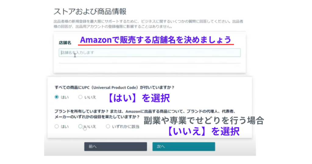 ここでは、**Amazonで販売するストア名(店舗名)**を入力します。
