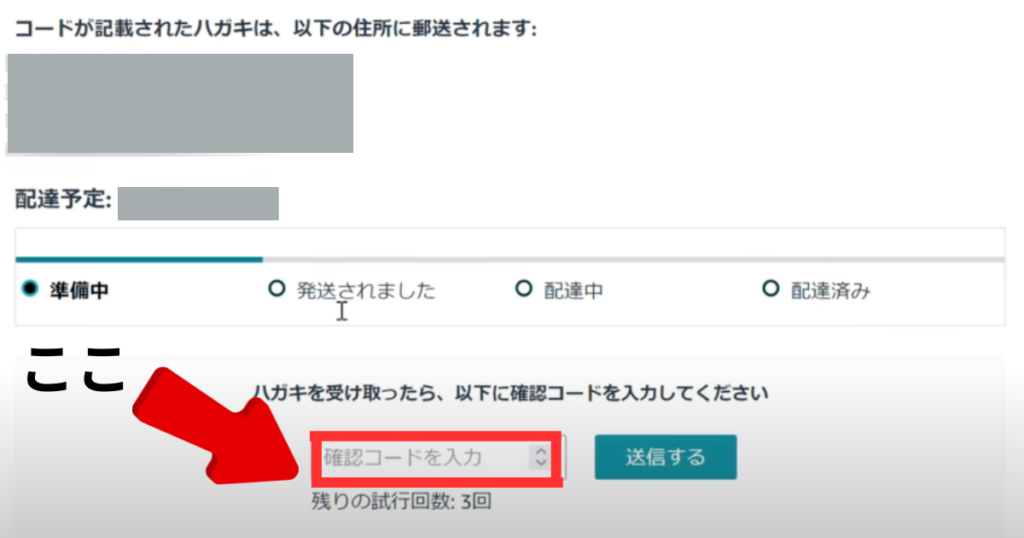 郵便物が届いたら、画面の指示に従ってその確認コードを入力してください。