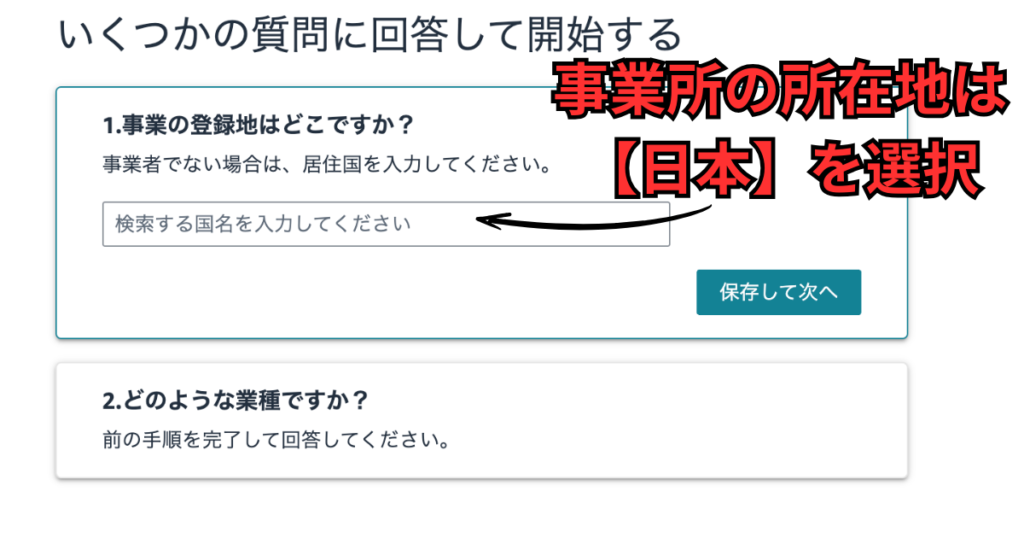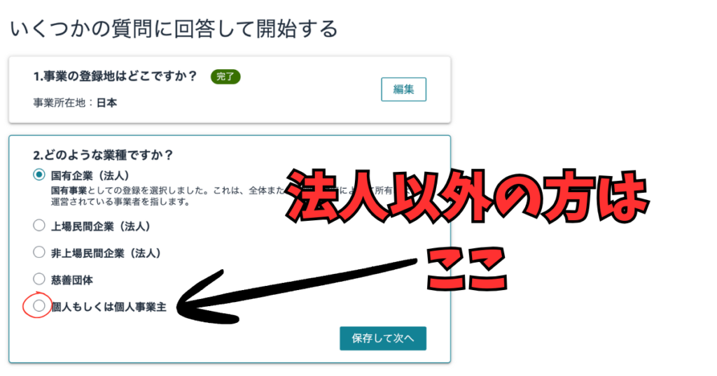 個人事業主や副業としてAmazon物販を始める方は、業種で 「個人・個人事業主」 を選択してください。 - 法人を設立している場合