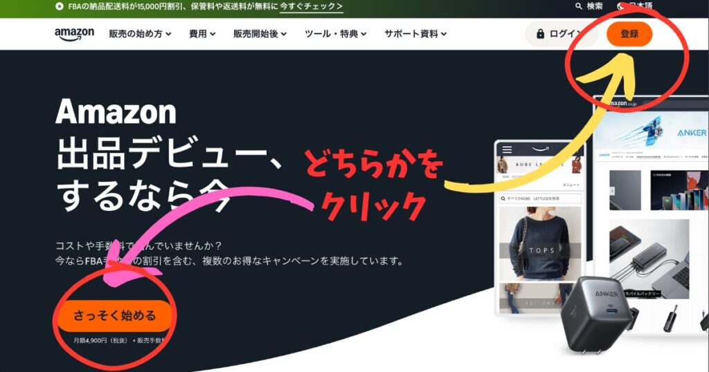 販売を始めるためには、個人事業主や法人として「マーケットプレイス」にお店を開くための 出品アカウント を新たに作成する必要があります。