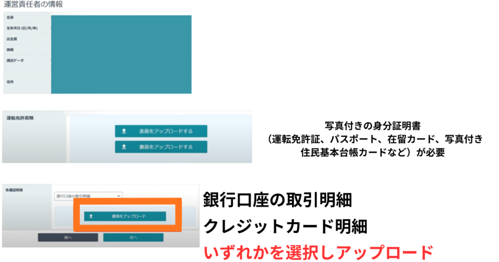 国籍、出生国、生年月日など、本人確認に必要な情報を入力します。 - 身分証明書の提出