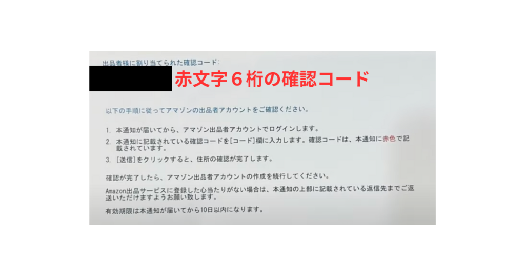 登録した住所宛に、**確認コード(6桁の赤文字)**が記載された郵便物が届きます。